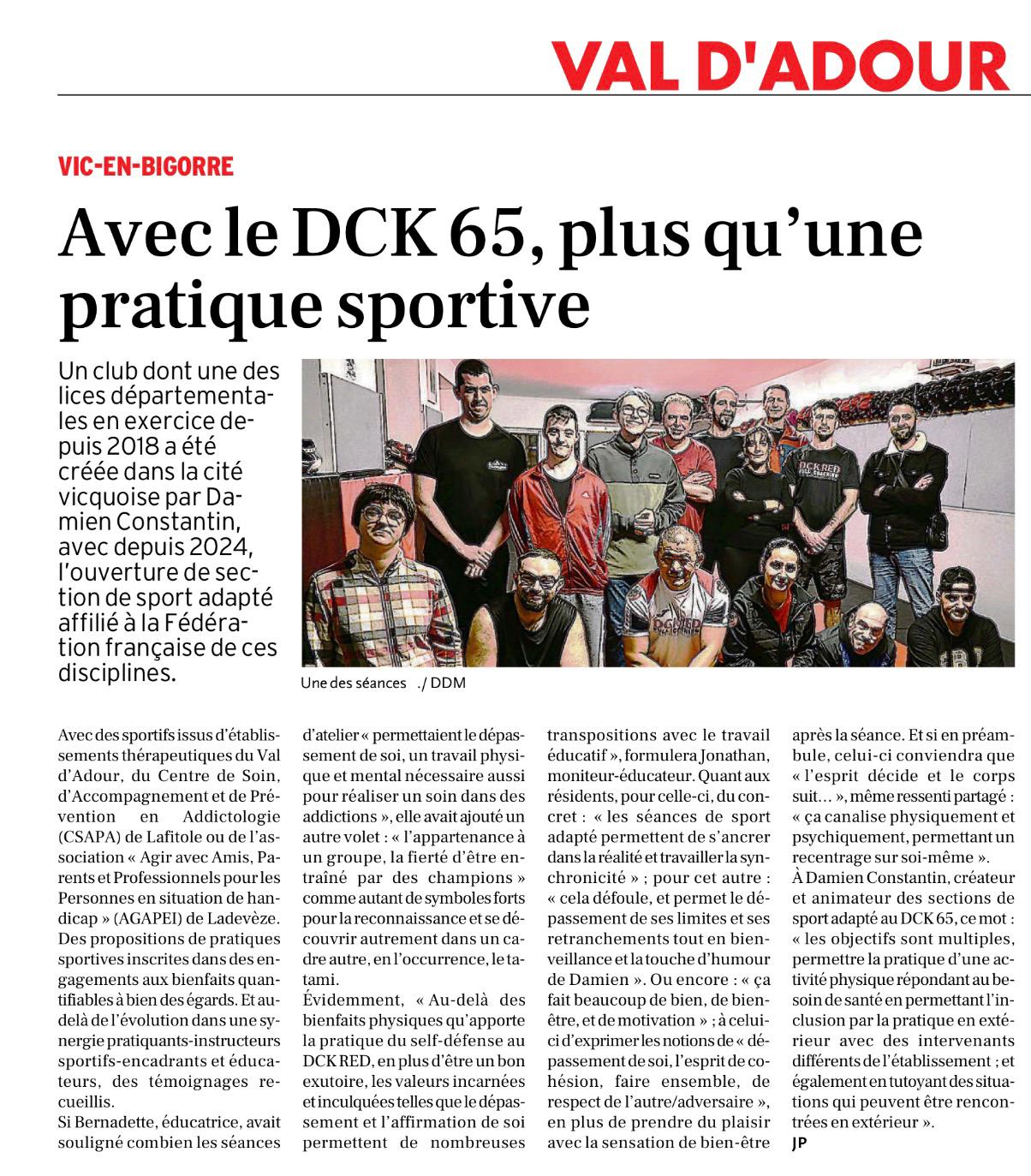 Cette section sport adapté créée en 2024 au sein du club DCK65 accueille entre autre, des personnes en situation de handicap accompagnées au sein de l'UG Ladevèze. La Dépêche était sur place pour recueillir les témoignages des participants. Article à lire ici